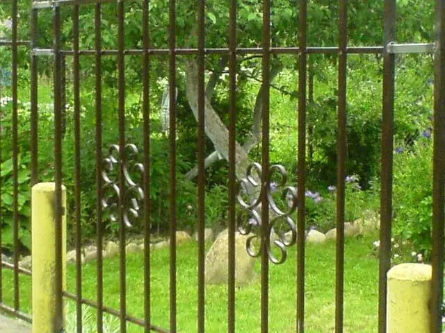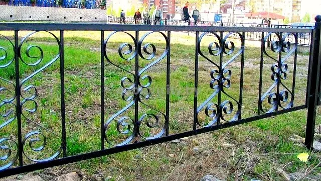 Ажурные заборы изготавливают из профильной трубы и металлического квадрата, из которого делаются завитки различной формы. В отличие от оцинкованных систем ограждений, заборы, изготовленные из черного металла, подвержены коррози. Поэтому металлическое ограждение сначала обрабатывают грунтовкой, а затем покрывают краской.