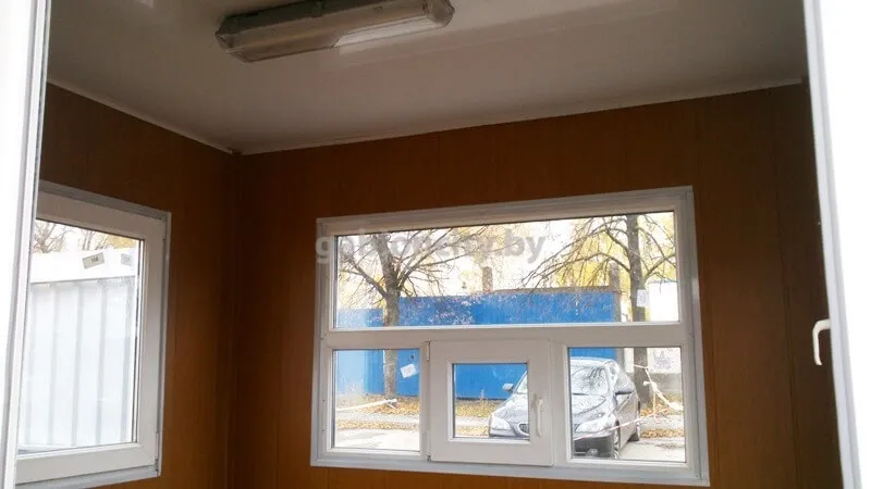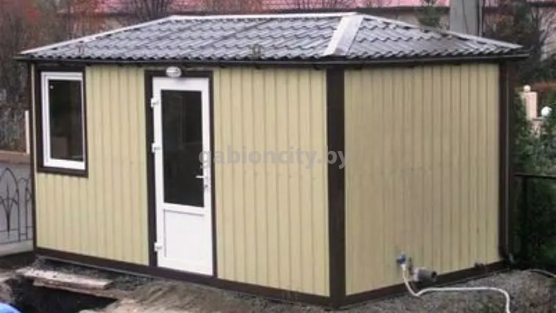 - Все материалы, применяемые в отделке бытовки — влагостойкие