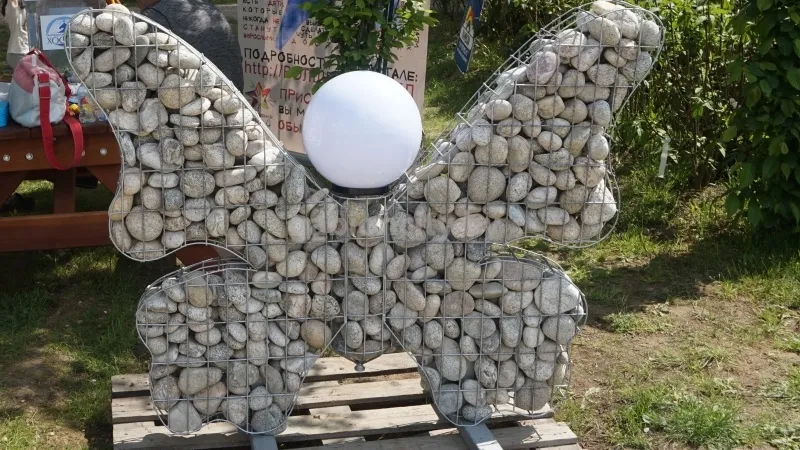 Скульптуры из габионов смотрятся эффектно и величественно, их можно установить перед фасадом здания или возле зоны для отдыха. Каменные скульптуры могут изготавливаться в форме различных животных и геометрических фигур крупных и средних размеров.