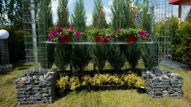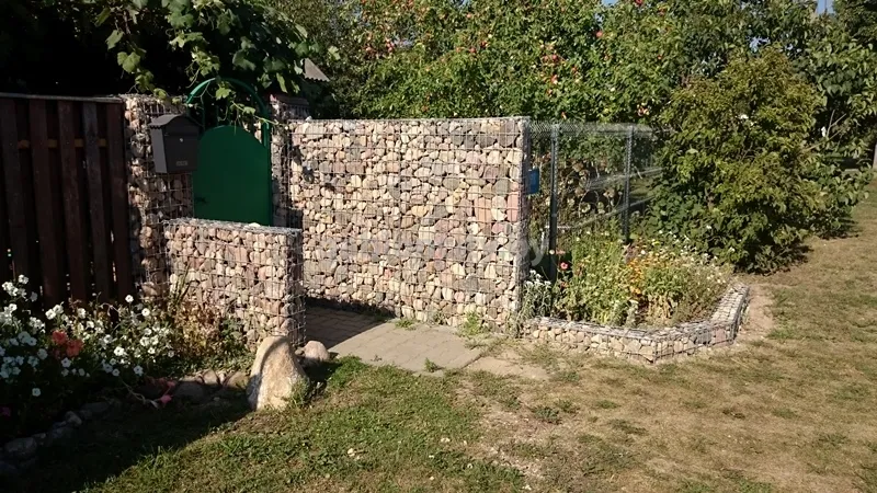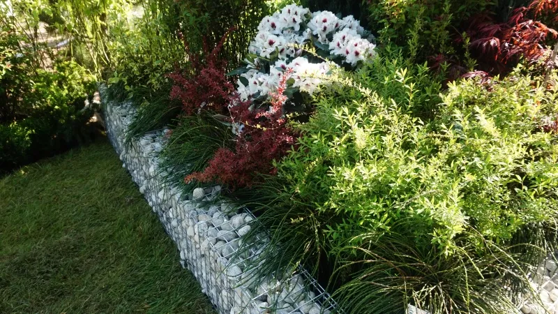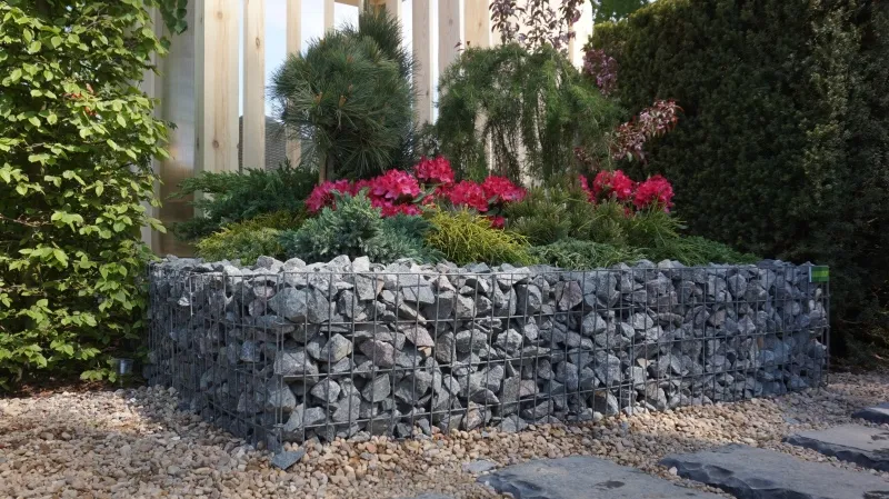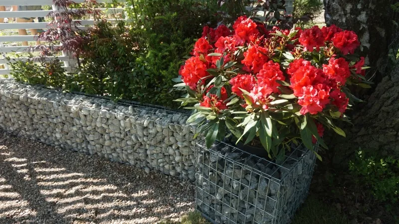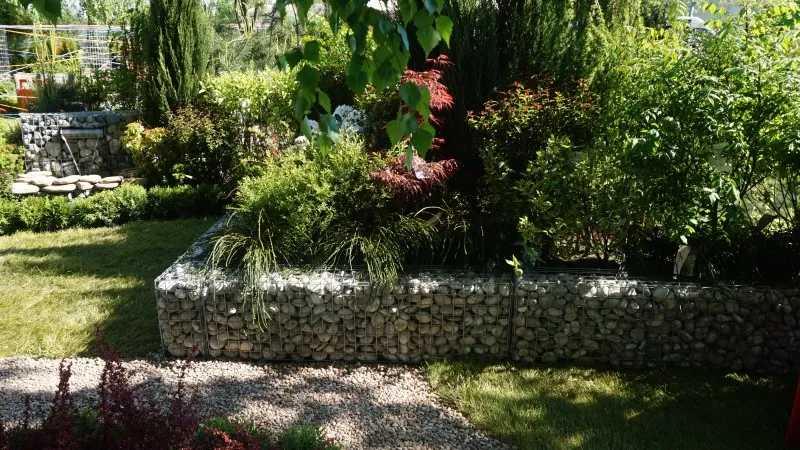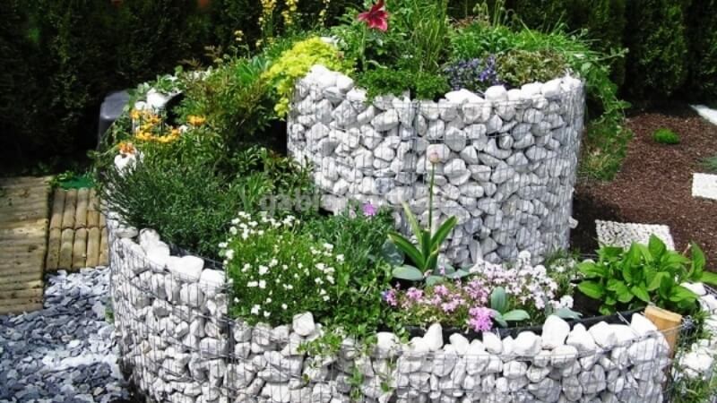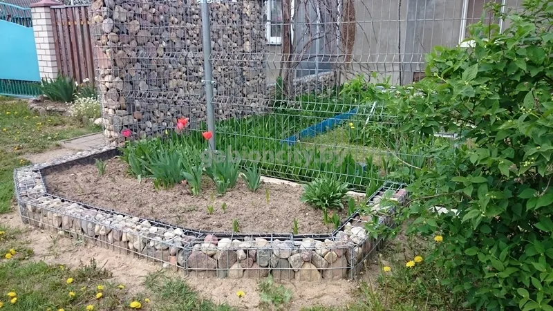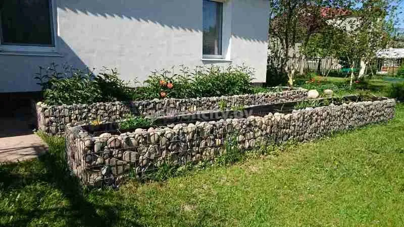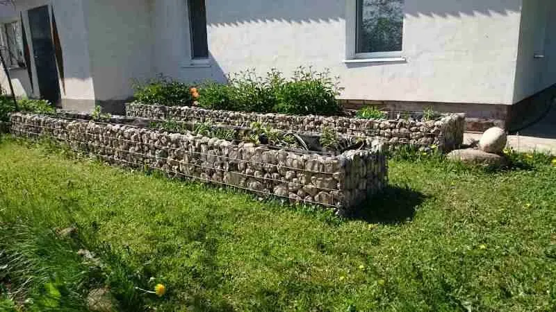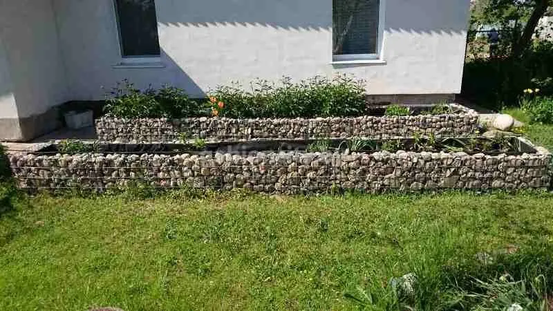 Габионные ограждения для клумб намного долговечнее, чем бетонные. Бетонная клумба требует ухода и со временем разрушается, теряя первоначально аккуратный внешний вид. Клумба из габионов с годами становится еще красивее, так как «врастает» в ландшафт и становится его естественным дополнением.