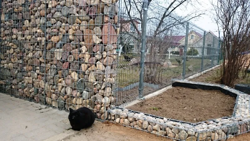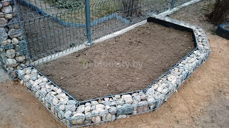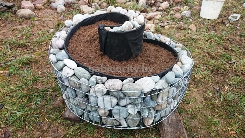 - Заполнить стенки сетчатой конструкции камнем, стараясь уложить его плотно без пустот.