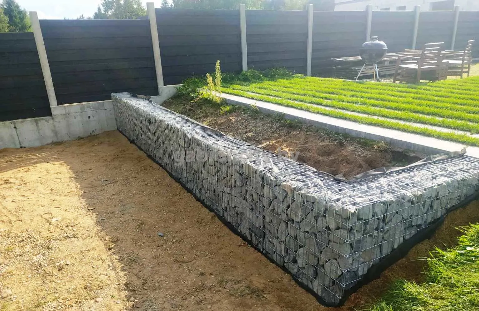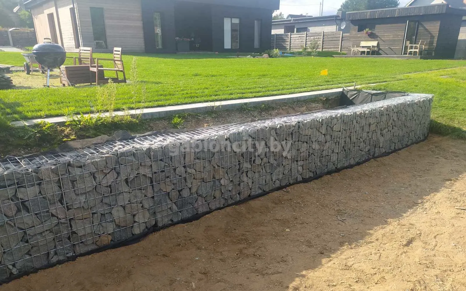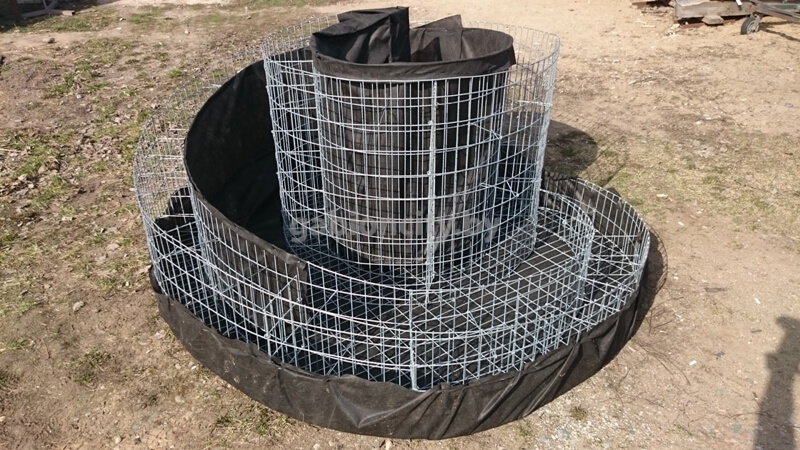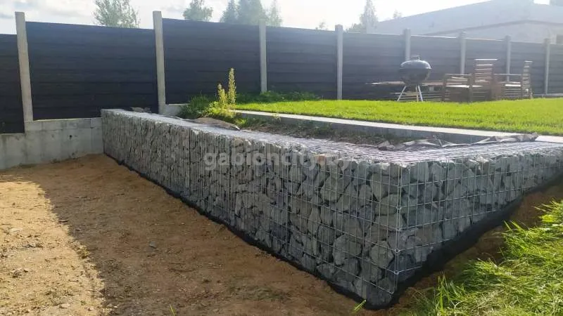 - Также устелить геотекстилем внутреннюю часть габиона, которая будет соприкасаться с грунтом.