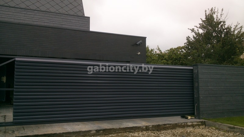 Особенности: оцинкованный штакетник нашего производства, благодаря своей универсальной форме, дает возможность создать разнообразный дизайн ворот, он может быть расположен по-разному: