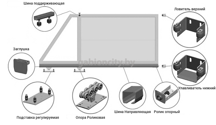- Комплектующие, фурнитуру для откатных ворот — все составляющие элементы