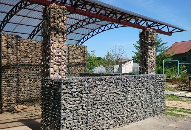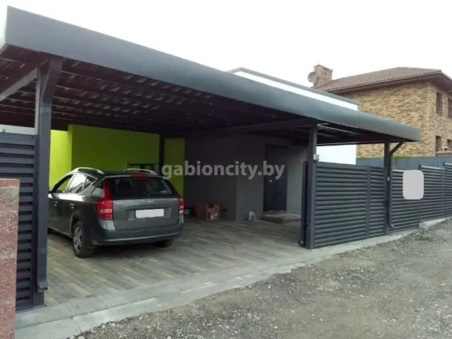Навесы для машин из поликарбоната и габионов