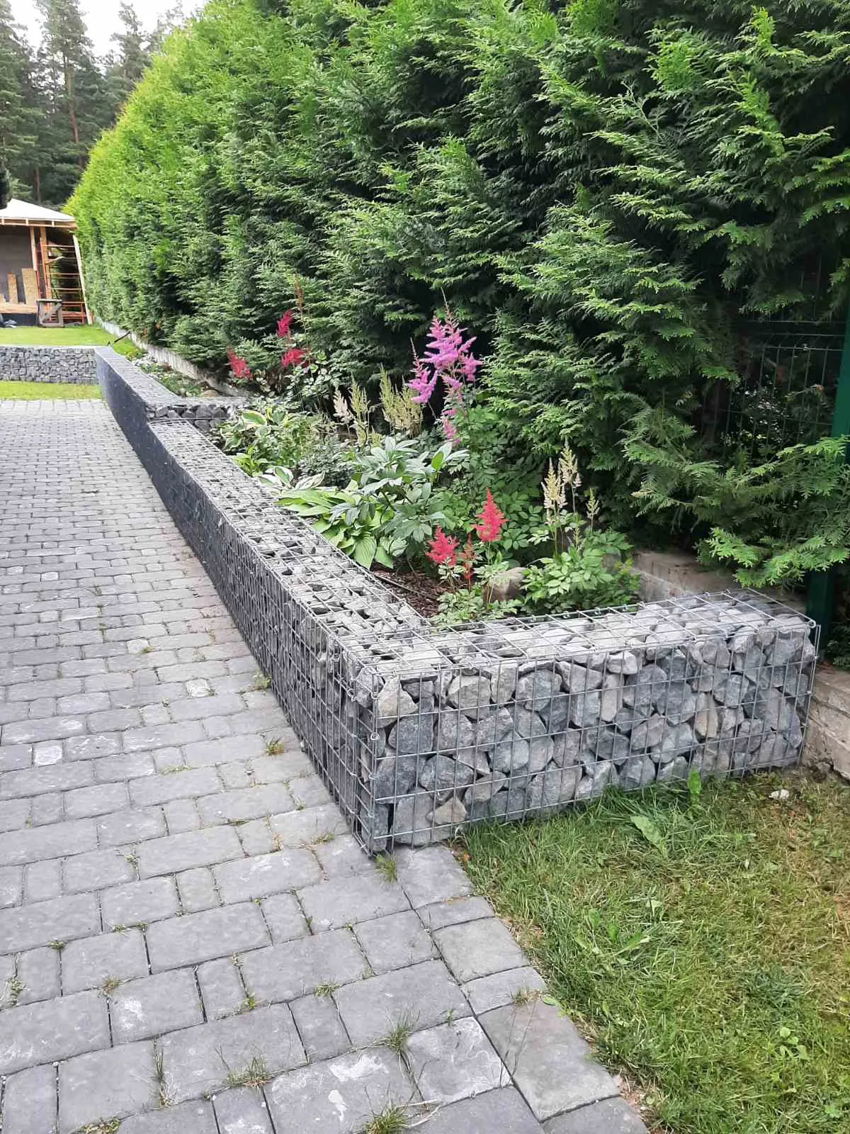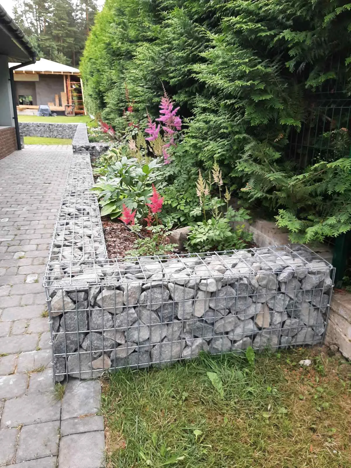Технология габионной отделки с применением натурального камня и оцинкованной сетки может применяться для самых различных изделий и конструкций: