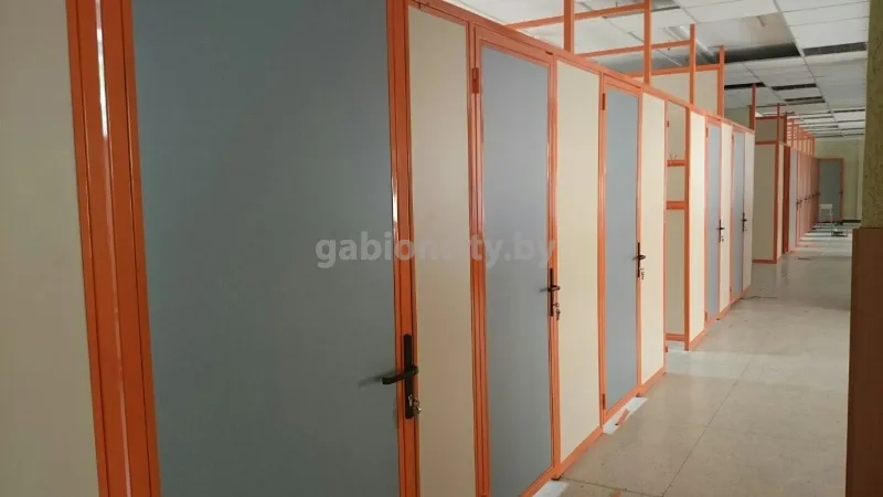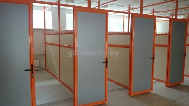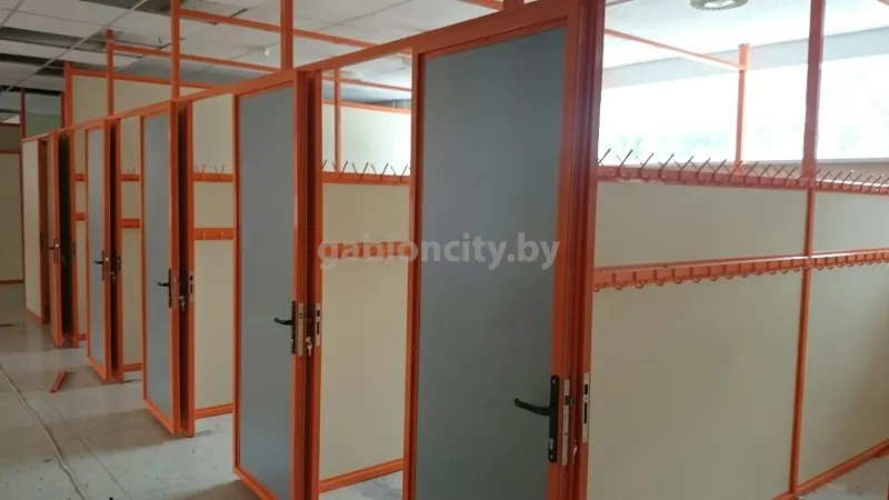Чаще всего зонирование пространства требуется в офисных помещениях и торговых центрах. Перегородки для раздевалок с дверцами, также как и сантехнические перегородки устанавливаются во всех общественных зданиях — школах, детских садах, спортивных клубах.