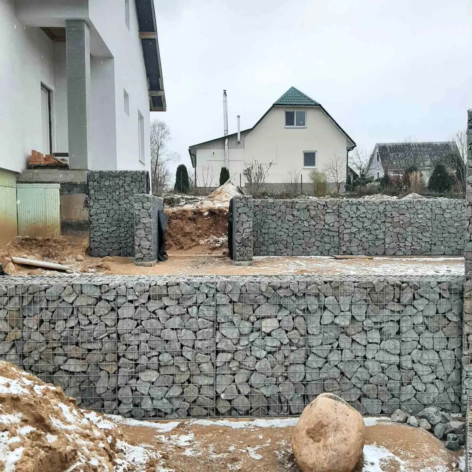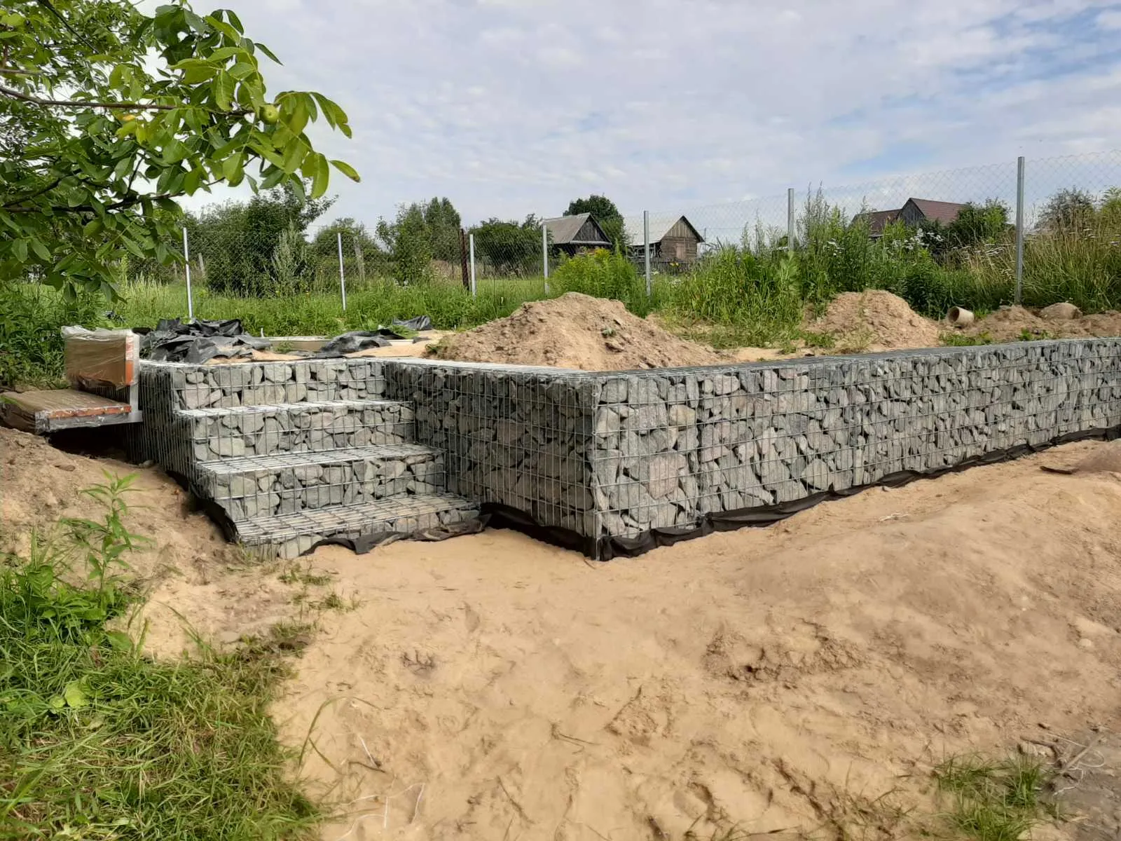 Возведение подпорных стен из габионов