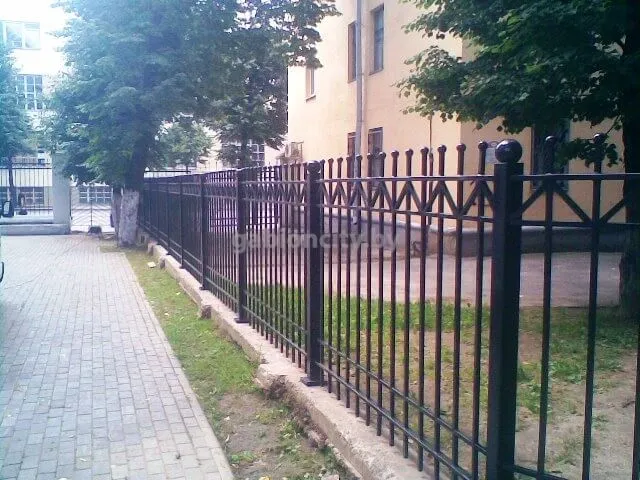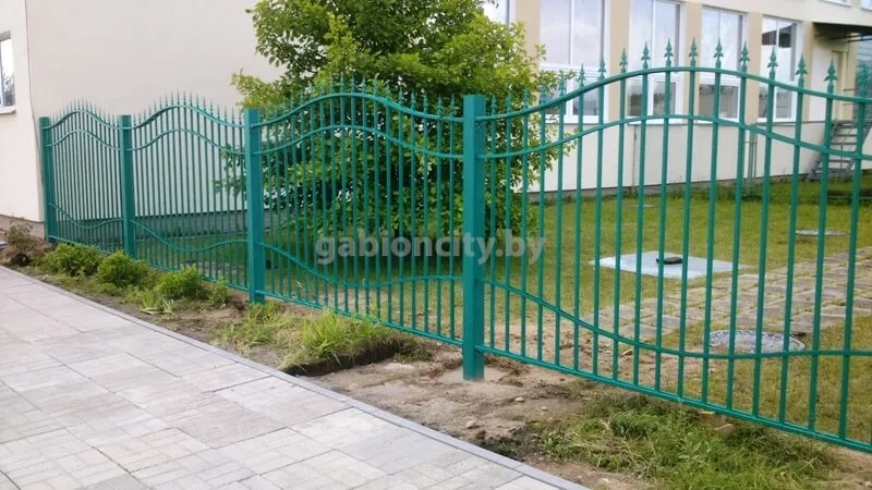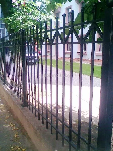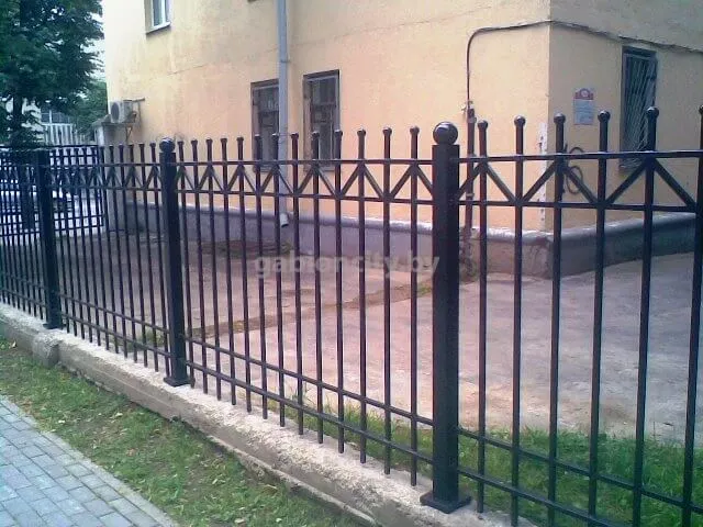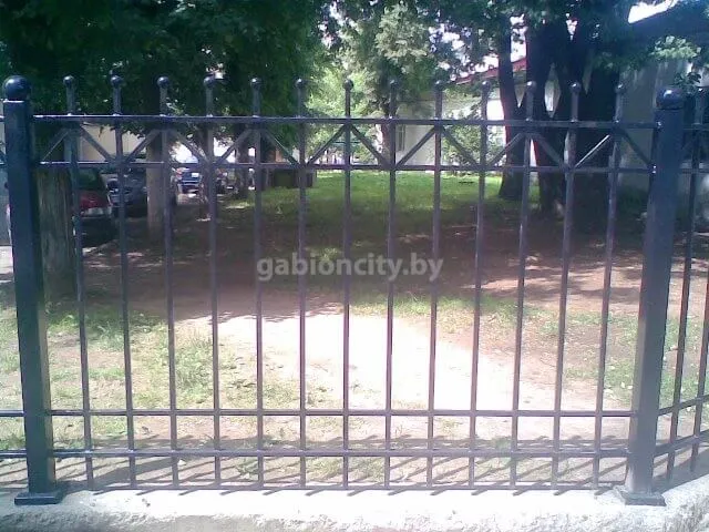 Забор изготавливается из черного металла, который грунтуется и покрывается краской. Столбы бетонируются в землю (точечное бетонирование), к ним привариваются секции. В стандартной комплектации забор покрыт грунтом ПФ-115. Для защиты от коррозии его также необходимо красить. Покраска является дополнительной услугой, ее могут осуществить наши работники либо Вы можете это сделать самостоятельно.