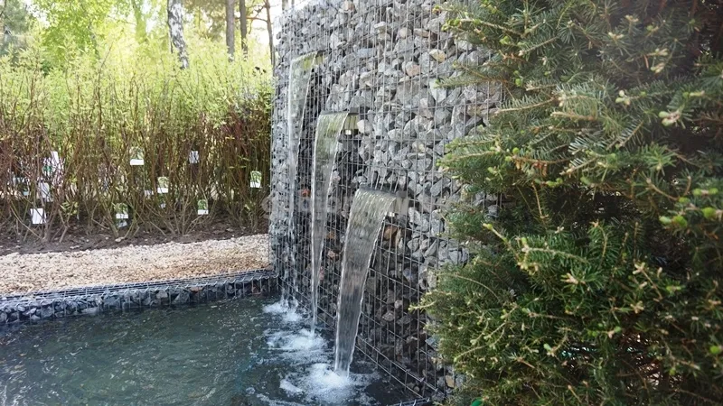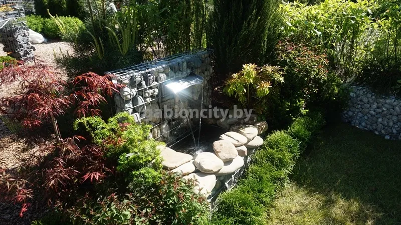 Искусственные водоемы, водопады и фонтаны очень популярны в современном ландшафтном дизайне. Их можно соорудить из разных материалов, но наиболее естественно и красиво с водой сочетается природный камень. По этой причине габионы лучше всего подходят для строительства декоративных водных объектов. Наличие собственого производства позволяет изготавливать декоративные водопады любого размера и формы.