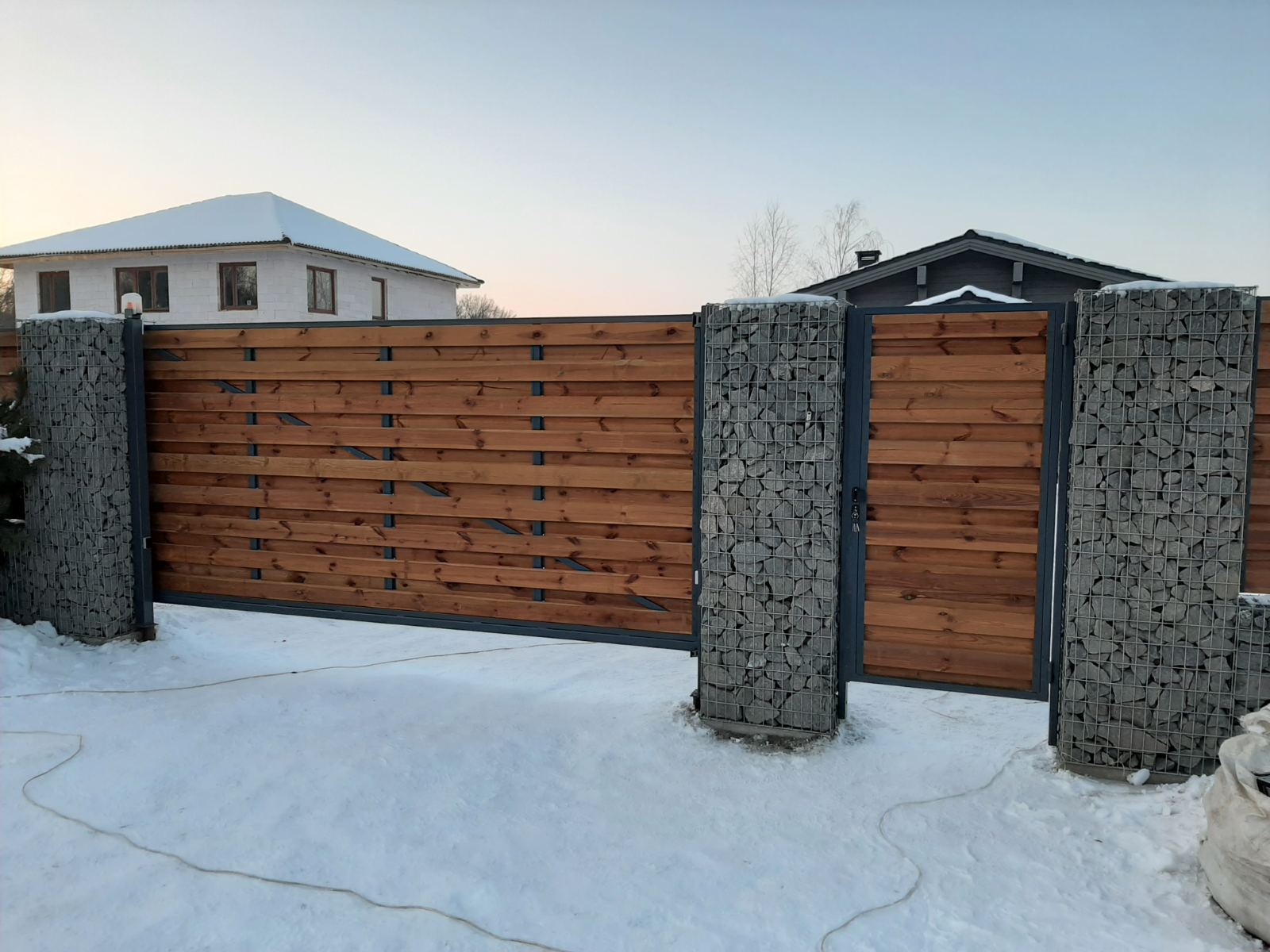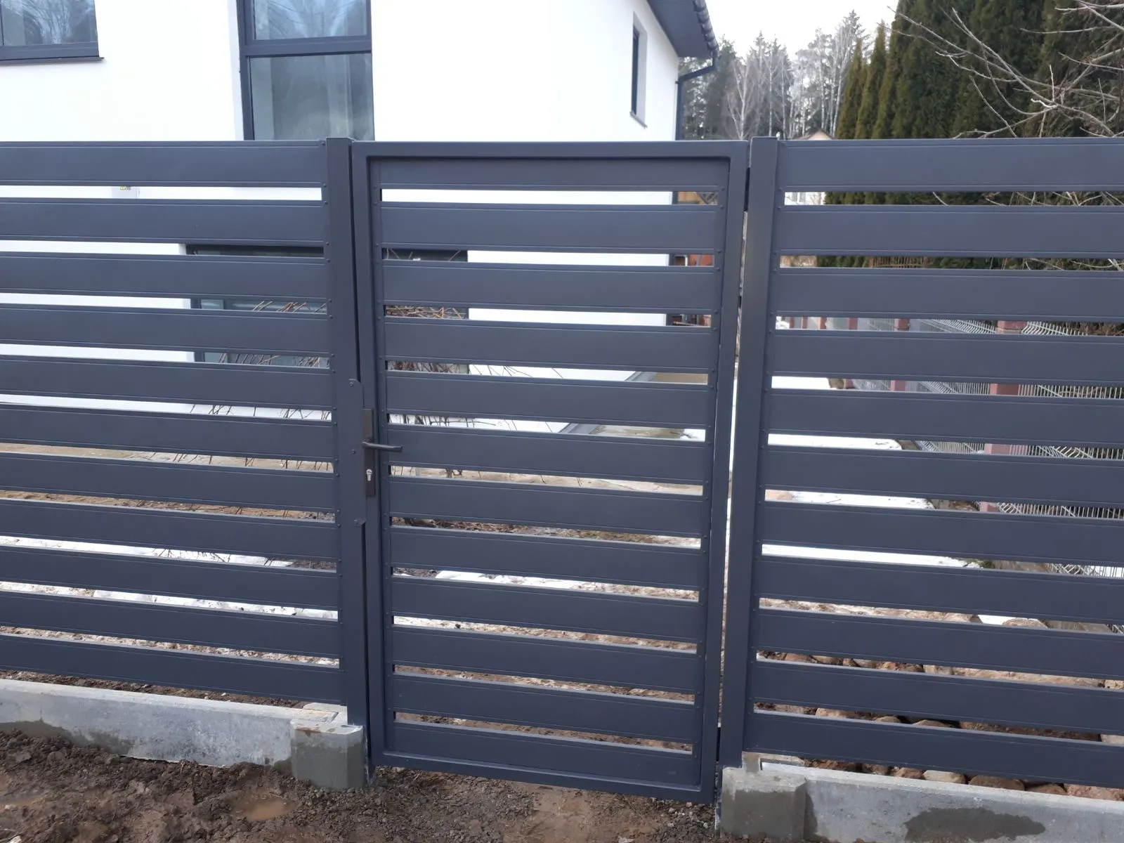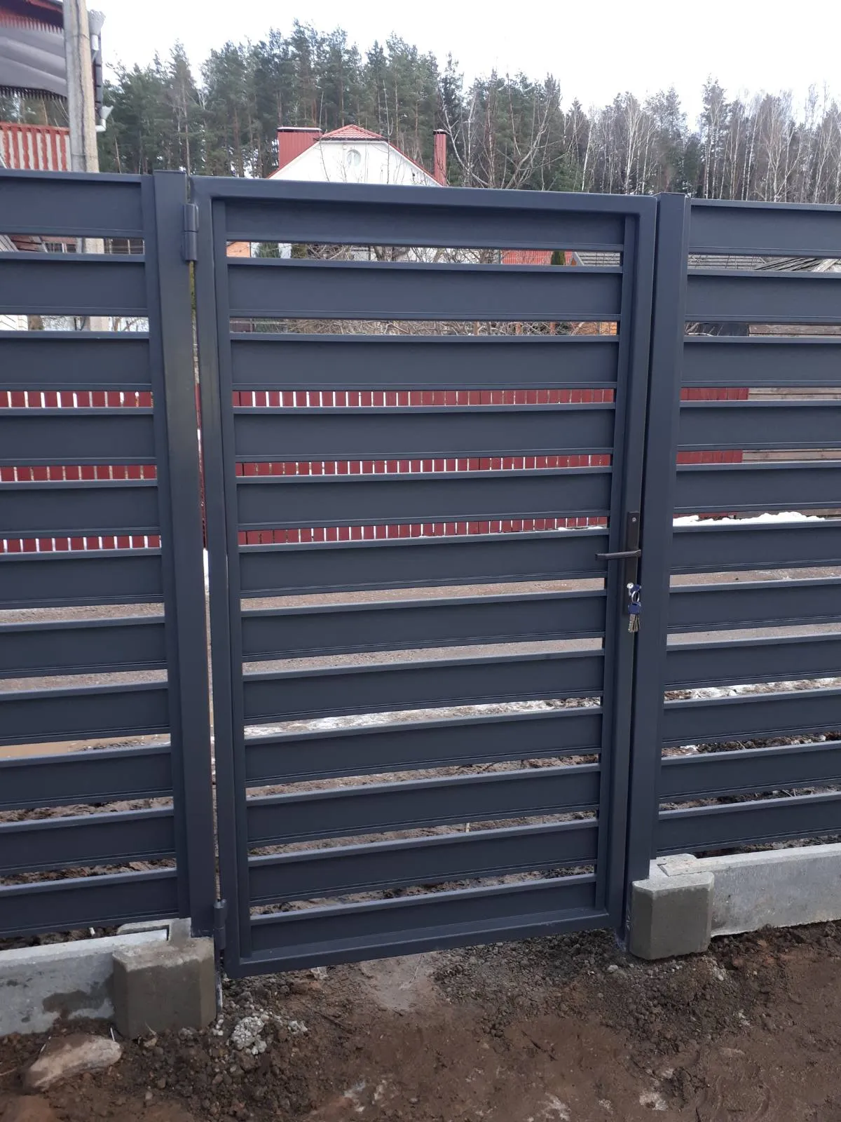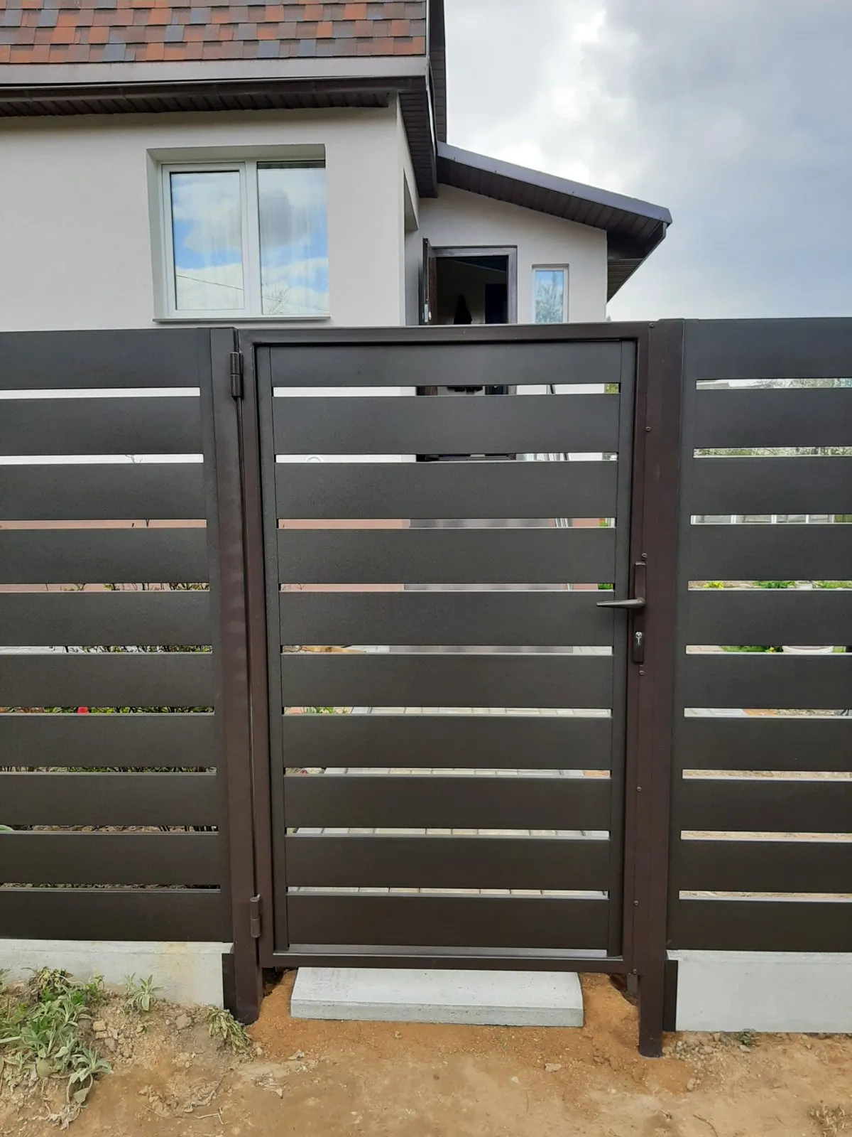 Профнастил, который используется для модульного забора, может быть двусторонним и односторонним. Двусторонний представлен в трех стандартных цветах: коричневый, вишневый, зеленый. Односторонний имеет более широкую гамму цветов. Самонесущий профиль, которым обромляются листы профнастила, может быть любого цвета.