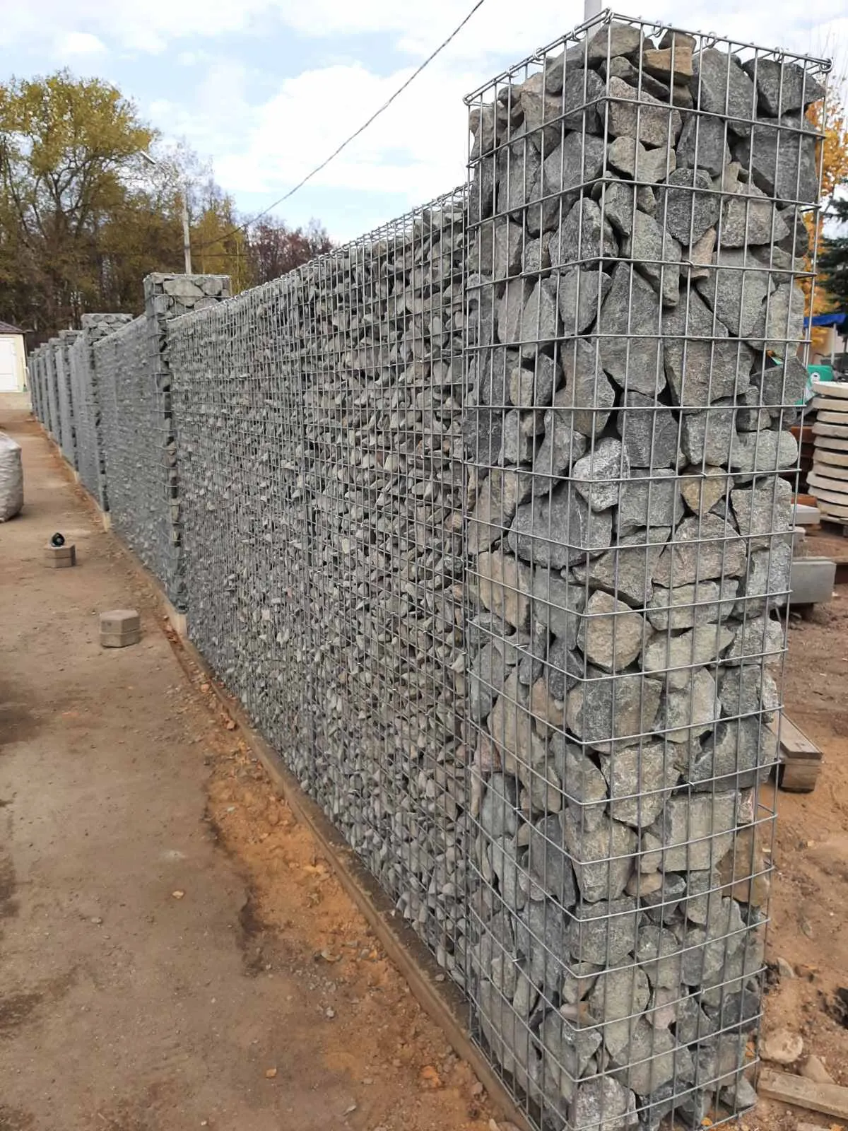 - С помощью габионов также можно изготовить бордюр или основание для забора