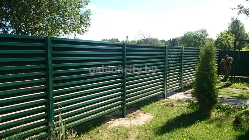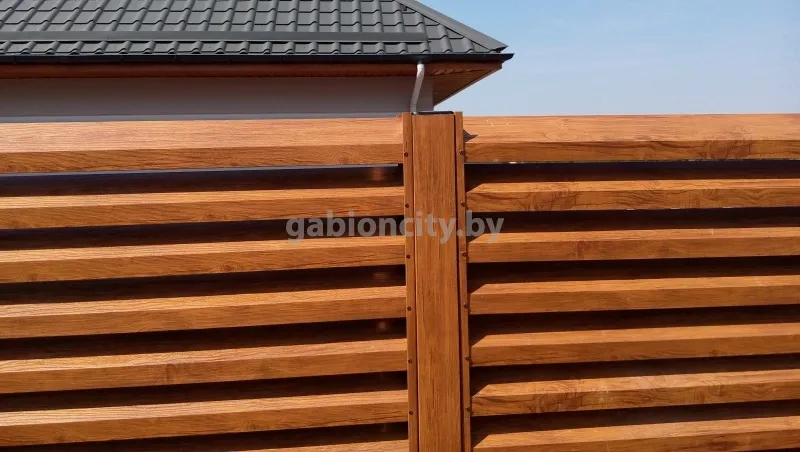 - ЭФФЕКТ ОКОННЫХ ЖАЛЮЗИ. Горизонтальный забор типа Жалюзи дает хорошую обзорность хозяину территории, однако, надежно защищают от посторонних глаз излишне любопытных окружающих. Ламели, из которых состоит секция, расположены под углом, благодаря этому создается эффект жалюзи.
